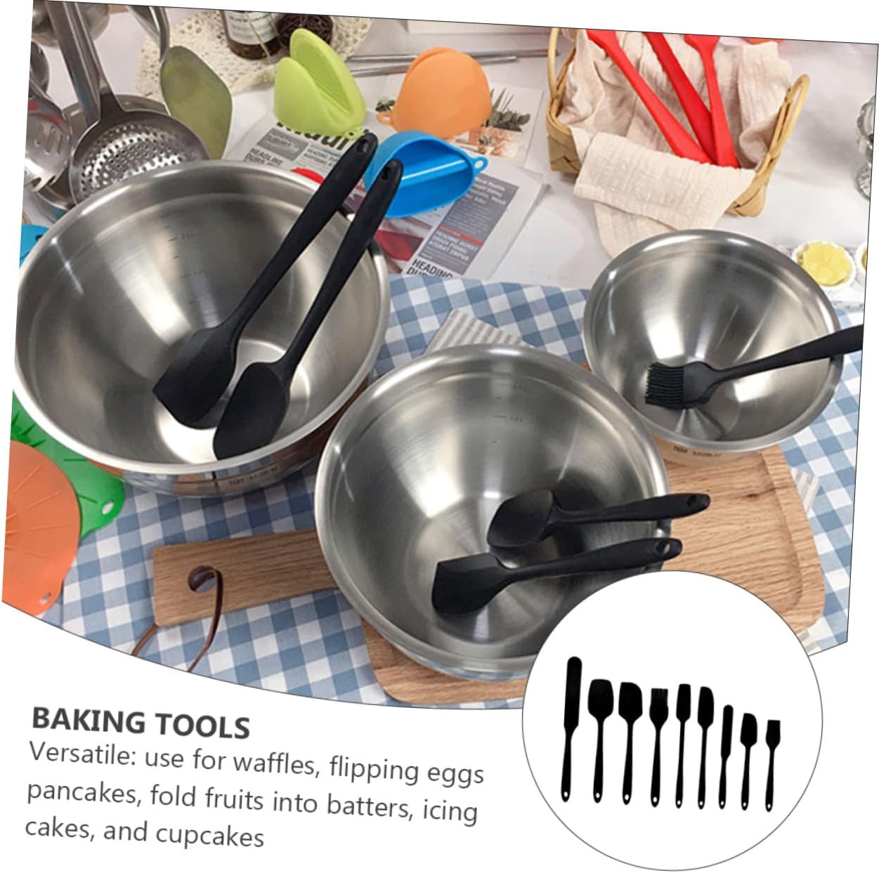 • Silicone spatula--silicone spatulas are your go-to tools for mixing, folding, scraping, cooking and even serving,silicone baking tool