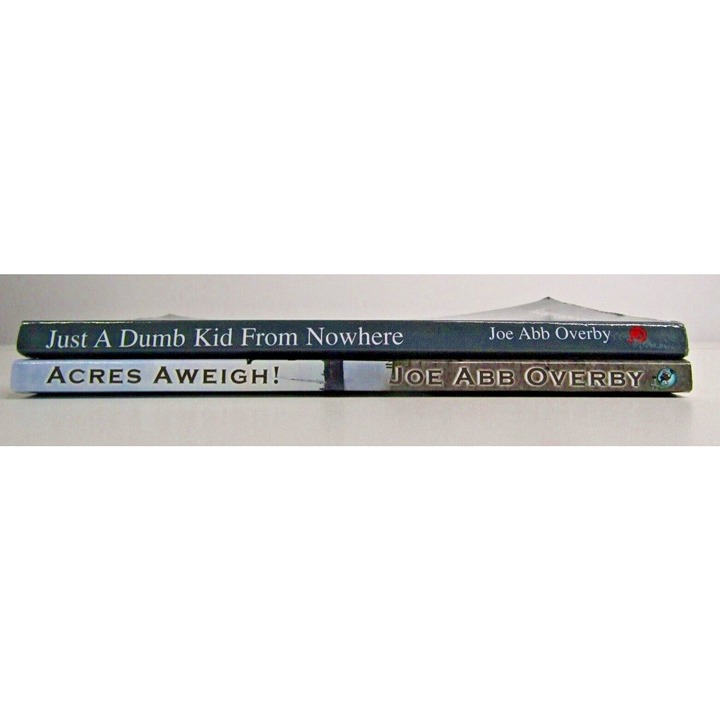This is a set of 2 books signed by Joe Abb Overby. Books are Acres Away and Just A Dumb Kid From Nowhere. Books are in good condition. See pictures for best assessment. Smudges are from camera lens not on books.