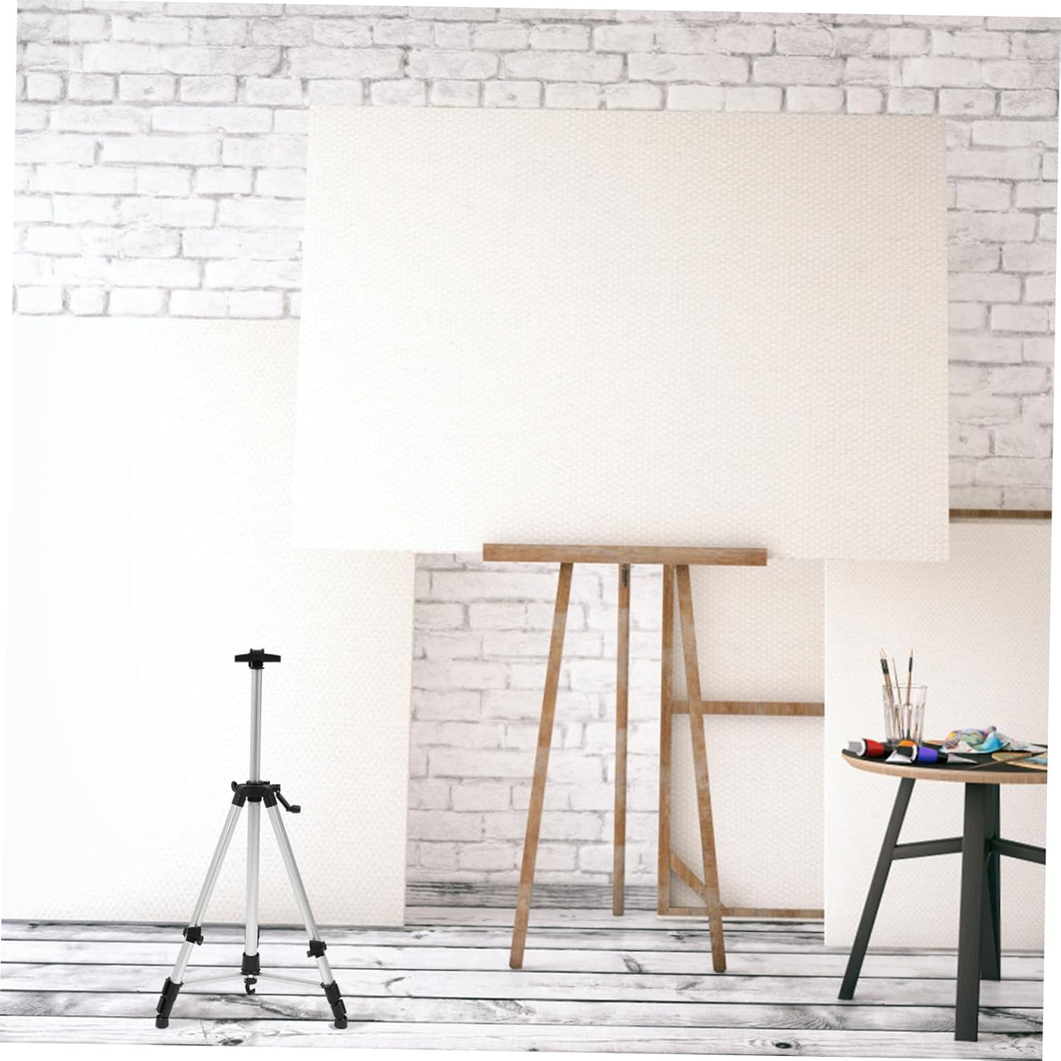 Package List 1 x Easel Stand Features -Size:153.00X82.50X82.50cm/60.13X32.42X32.42in easel for painting -Material: Aluminum alloy tripod stand - also an display easel for paintings, office presentations, poster and dry erase boards, or as a store sign holder and more painting easel. - made with reinforced lightweight aluminum metal for extra stability easel stand. - About 152cm after raising, and about 51cm after foldable easel. - Easy to and assemble paint easel for canvas painting. - The non-skid feet add stability and also protect floor surfaces easels for painting. - An excellent multi-functional easel that artists can use for painting outdoors as a field easel or indoors as a floor or tabletop easel tripod easelGoods Informationeasel stand Made of sturdy materials, this easel provides safe, stable and comfortable painting opportunities for amateur and professional artists.painting easel stand Height can be adjusted to suit your different painting styles.tripod easel stand Can be used for outdoor display advertising, outdoor drawing board, indoor classroom board, etc