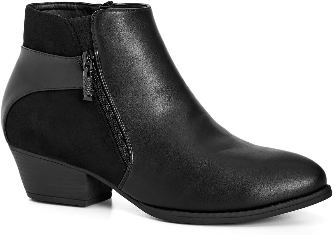 Go for timeless chic in the Haley Ankle Boot, designed with an ankle zip closure for easy wear. As well as a timeless black hue and wide it, these boots are bound to be on high rotation in your collection.Key Features Include:- Ankle boot style- Pointed toe- Inside zip closure- Faux leather & suede fabrication- Wide fit- Low block heelWear with stockings, a midi skirt and your favorite turtle neck for workwear style.100% man-made materials.br>WIPE CLEAN WITH DAMP CLOTHbr>Imported