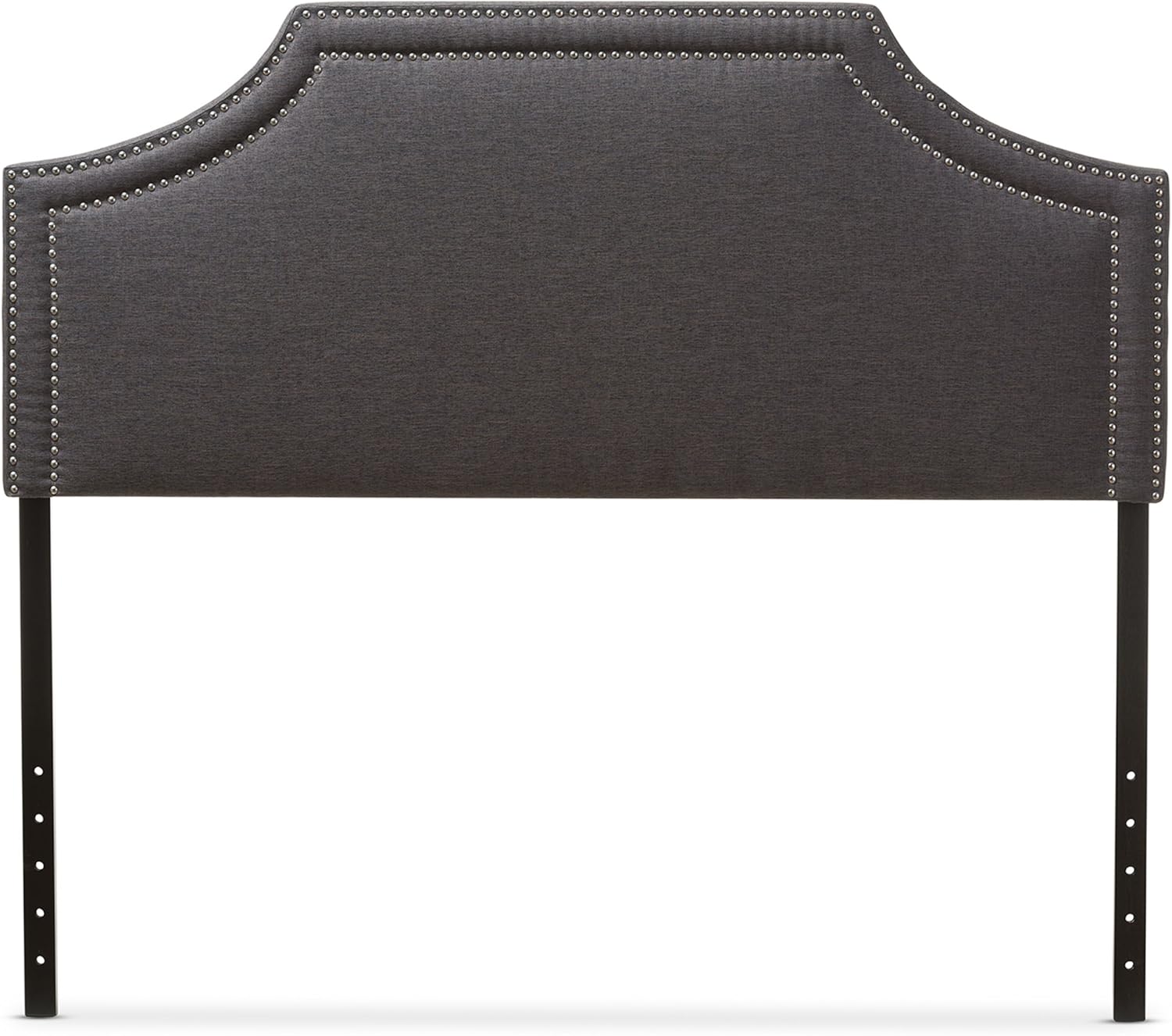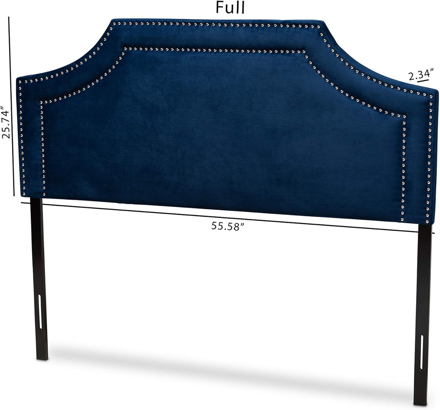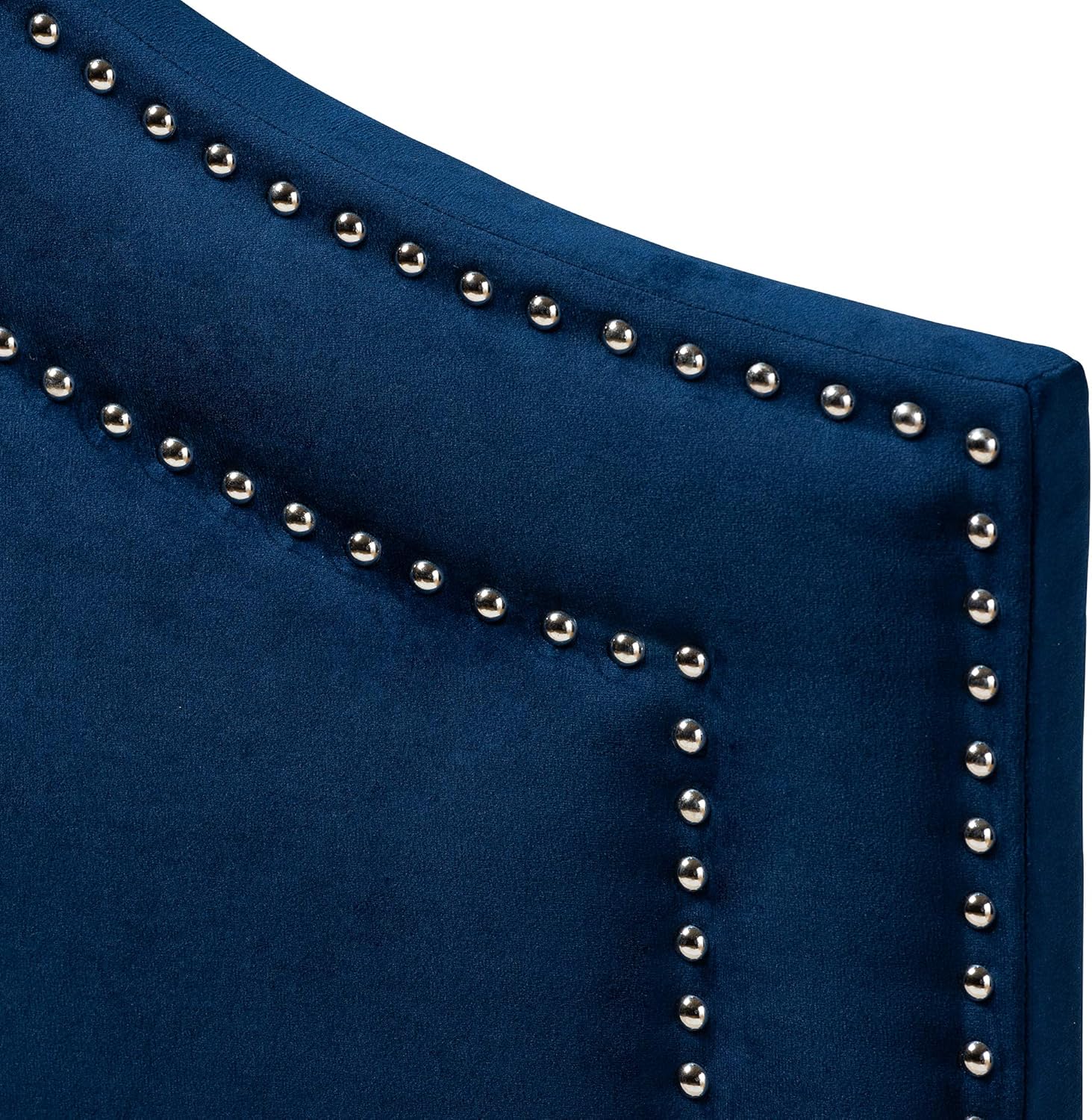 Featuring clean lines and metallic accents, the Audree headboard offers modern elegance. Constructed from MDF wood and LVL, the Audree is upholstered in a soft, foam filled velvet polyester fabric that provides ample comfort for you to lean against. The headboard features a scooped silhouette that is highlighted by glamorous silver nailheads, giving the piece a regal visage. Leg supports are invisible once set up and can be adjusted to suit the height of your ensemble, for convenience. The headboard sits between the wall and the ensemble frame, attaching not to the bed base but to the legs, for stability. The Audree headboard is made in Malaysia and requires assembly. Dimensions: 56.3" High x 78.3" Wide x 2.4" Deep; Height (from Floor to the Top for Each Post Point): Position 1: 56.3" High; Position 2: 53.9" High; Position 3: 51.4" High; Position 4: 48.8" High; Headboard Dimensions: 26" High x 78.3" Wide x 2.4" Thick