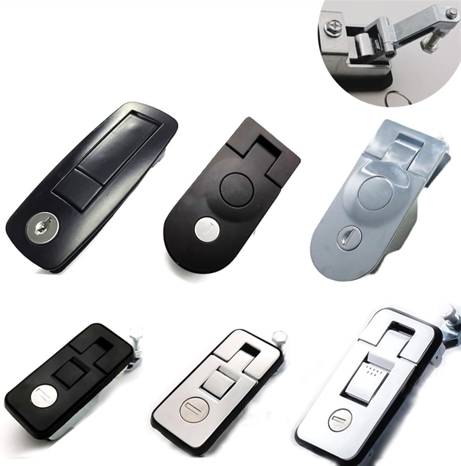 Bounce Handle Cabinet Lock For Electronical Storage Box Locker Bus Truck Trunk Machine MS207 1PcsItem: MMS207 Lock Type: Flat Key Key Type: Flat Key Material: Zinc Alloy Finished: Black Key Combination: Over 50 Gross Weight: 320g/pcs Package: PP Bag Accessories: Lock*1pcs, Key*2pcs