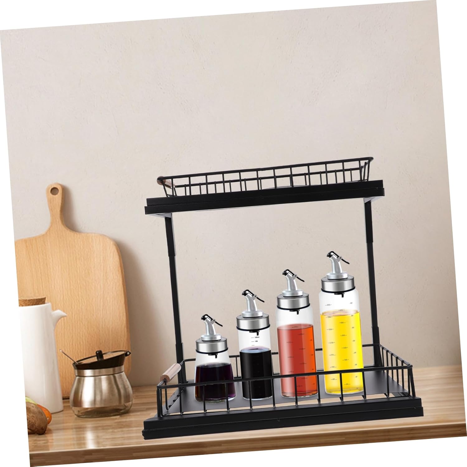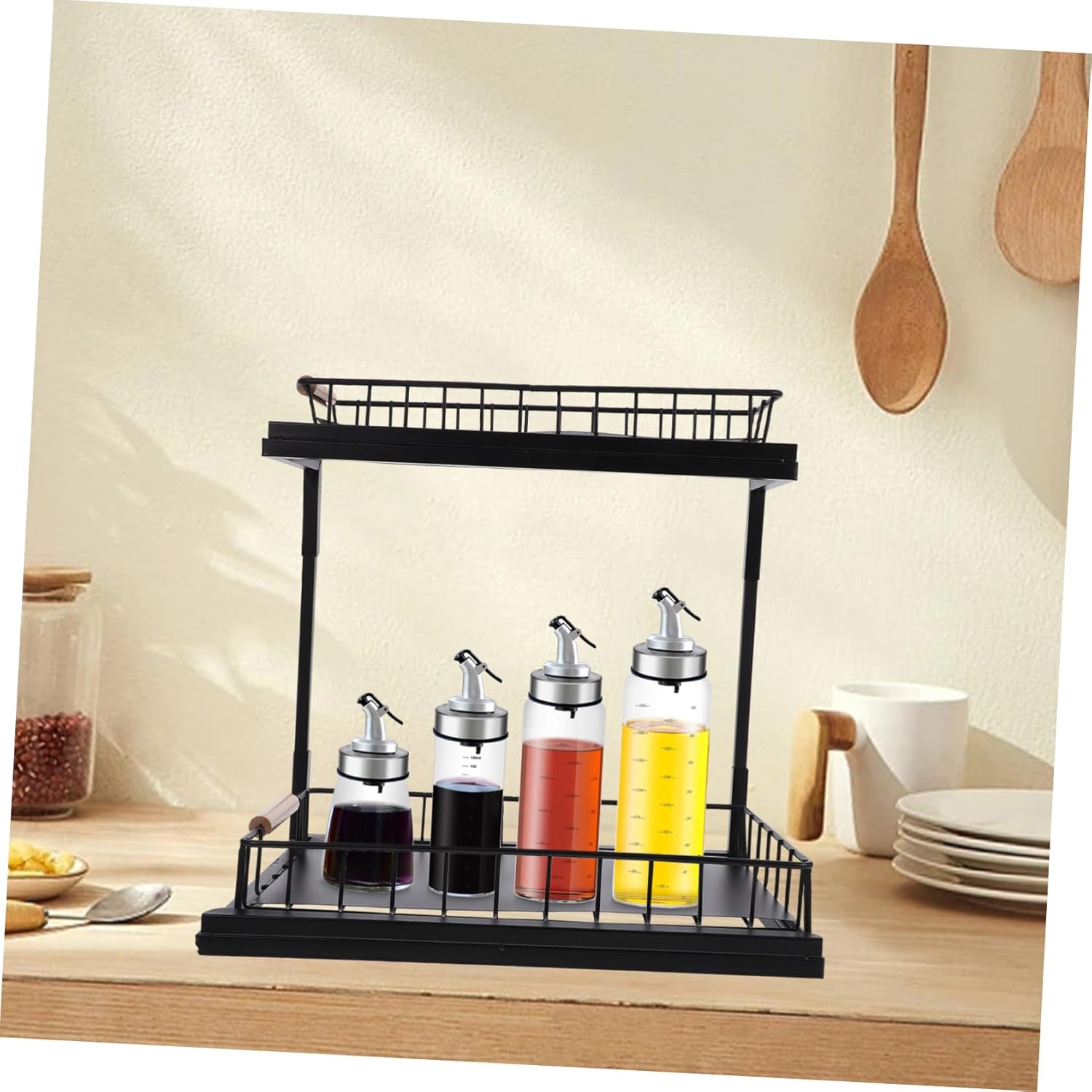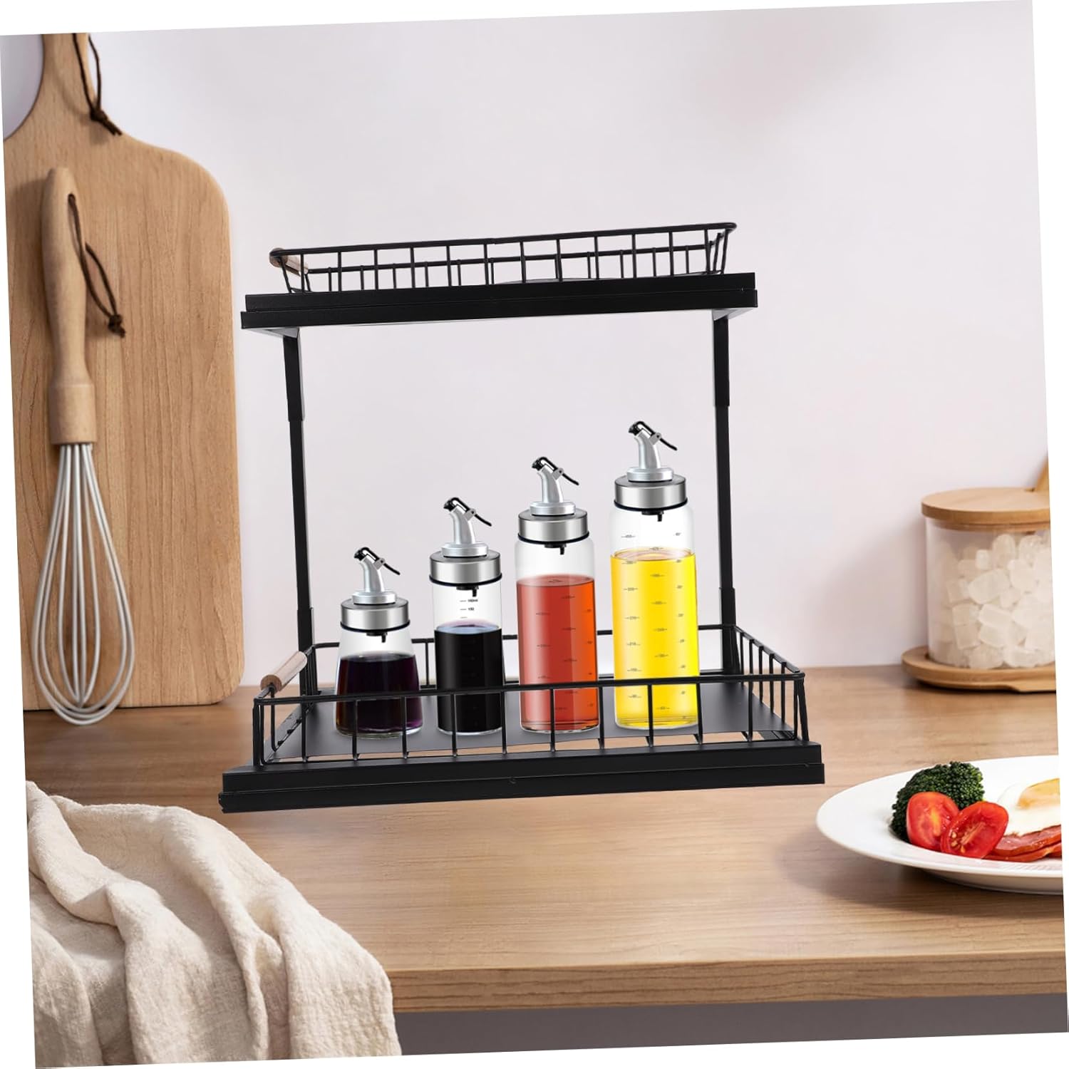 Package Include 1 x Under Sink Organizer Characteristics -Material:Carbon steel Under Sink Storage Bins - Size: 38.00X36.50X28.00cm/14.93X14.34X11.00in Under Sink Organizer - Color: Black Bathroom Under Sink Organizer - It uses a guardrail prevent tableware from accidentally falling, you can use with confidence Telescopic Sink Holder. - Layered design brings the larger capacity, the material makes it strong and Under Sink Spice Holder. - It is designed to be pulled out, which is more convenient to use than other normal storage organizers Kitchen Storage Holder. - Owning the and break resistance ability, the kitchen cabinet organizer is very Kitchen Countertop Rack. - The storage shelf is exquisite in workmanship, beautiful and , can match your modern designed kitchen Seasoning Jar Shelf.Goods InformationUnder Sink Organizer The 2-tier kitchen storage organizer has enough capacity, which can meet your different storage needs.Household has a wide range of application, suitable for kitchen countertop, under sink, cabinet and so on.Kitchen Countertop Rack With sliding design, it allows you to easily access the item you need in the cabinet, very convenient to use