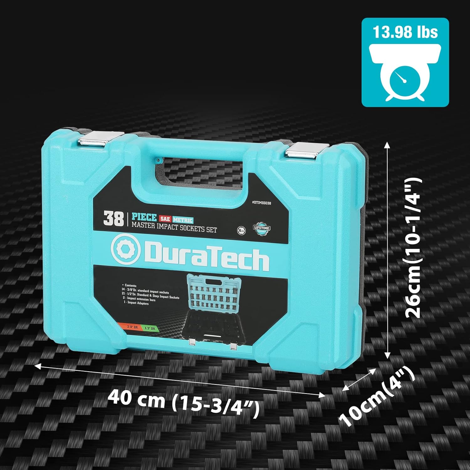 DURATECH 1/2" & 3/8" Drive Impact Socket Set, 38-piece Socket Set, Metric/SAE Sockets with Extension Bars and Impact Adapter