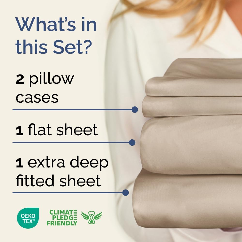 • 4 PIECE SHEET SET: This bed sheet set comes with 2 pillowcases total. The pillowcases feature secure enclosure designs to keep pillows neatly in place. This bedding set is crafted with deep pockets to fit your extra thick mattress perfectly, combining softness, durability, and easy care.