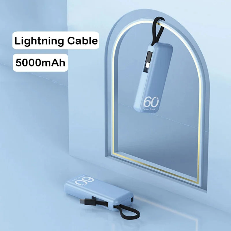 5000mAh Portable Mini Power Bank Built-in Cable Fast Charger External Spare Battery Small Mobile Powerbank For iPhone Samsung Xiaomi