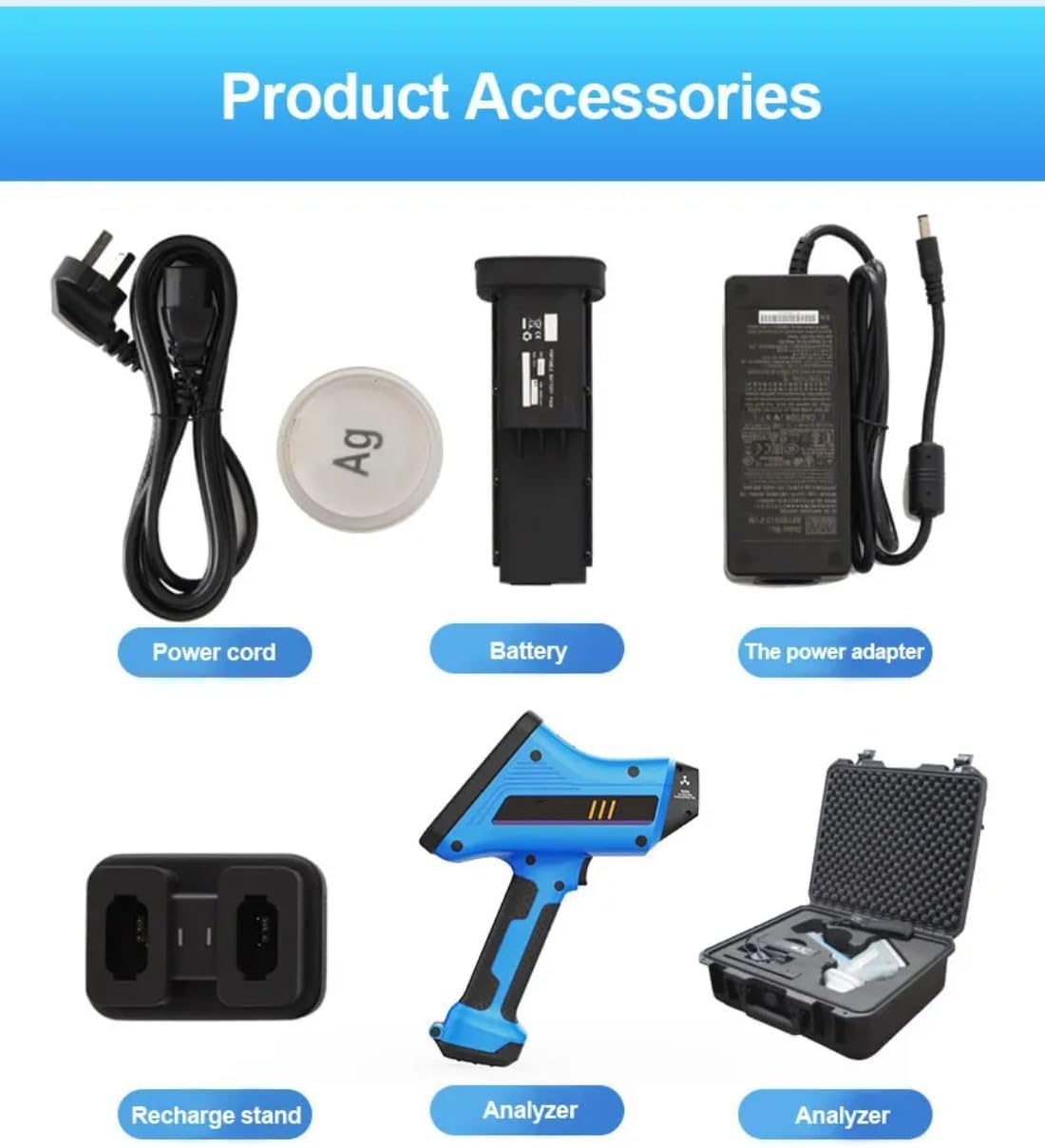 - HIGH-PRECISION ELEMENT ANALYSIS FOR 25 METALS – The analyzer can accurately detect and analyze 25 different elements, covering a broad spectrum of metals and materials. It can identify elements such as (Ti), (V), (Cr), (Mn), (Fe), (Co), (Ni), (Cu), (Zn), (Se), (Zr), (Nb), (Mo), (Rh), (Pd), (Ag), (Cd), (Sn), (Sb), (Hf), (Ta), (W), (Re), (Pb), (Bi). This makes it ideal for precious metal testing, alloy analysis, and raw material composition detection applications across various industries.