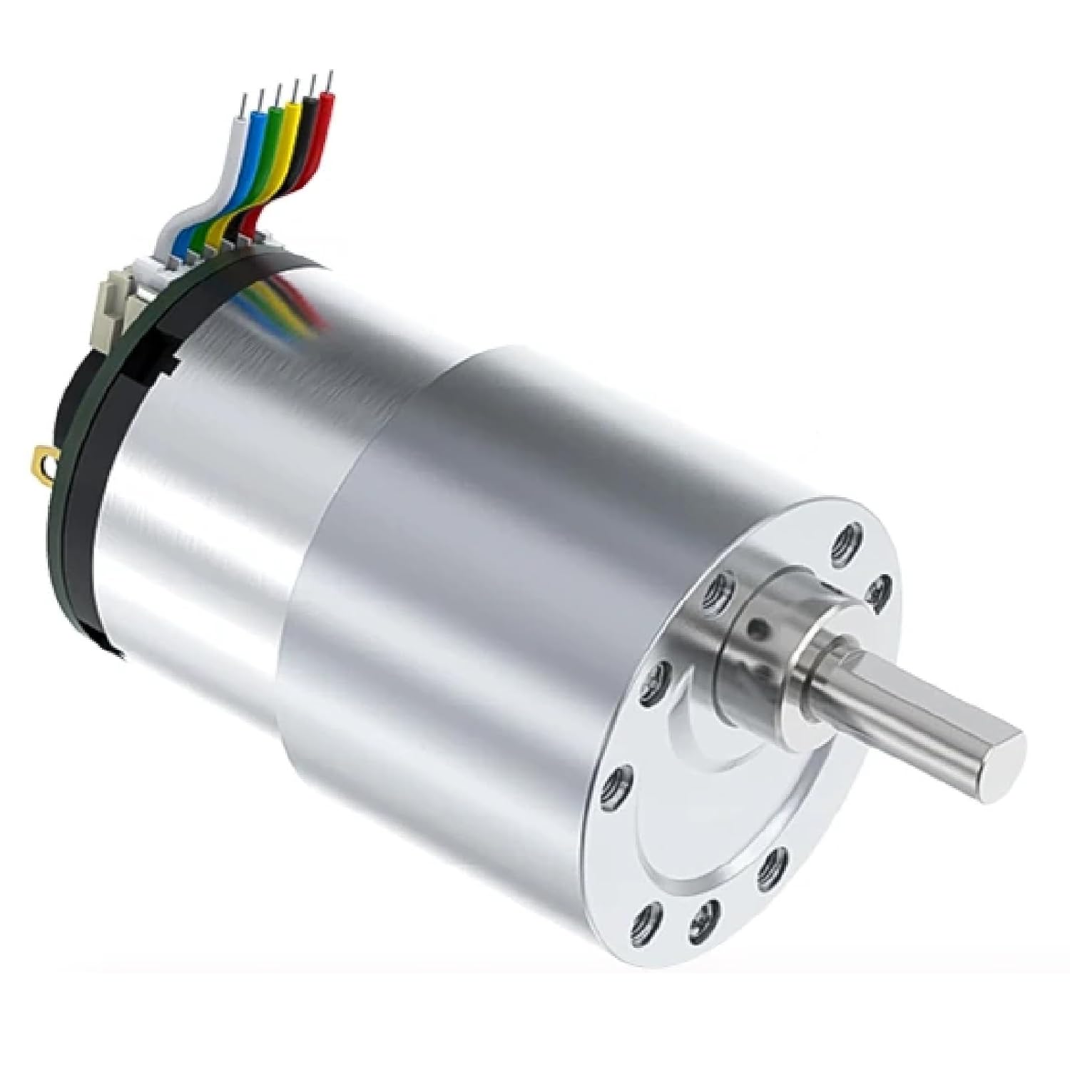 This JGB37-520 brushed DC gearmotor combines precision engineering with versatile functionality. The motor features an integrated Hall encoder that provides real-time speed feedback through A/B dual-phase signals, ensuring accurate operation monitoring with 11 pulses per revolution. Its adjustable speed control system allows for both forward and reverse operation, making it ideal for various applications. The all-metal gear construction, crafted from high-quality materials, significantly enhances torque output while providing superior durability and heat dissipation. A distinctive D-shaped output shaft ensures stable power transmission and secure mounting. The motor utilizes pure copper windings for optimal electrical conductivity and consistent performance, with an operating current range of 0.08A to 0.15A. This motor delivers 1.9W to 7.8W of output power and features a robust 21kg torque rating. Designed for reliability, it's perfectly suited for fans, home appliances, and other applications requiring precise speed control. The motor's construction emphasizes durability with a drip-proof design and an estimated operational life of 800 hours. Custom shaft options are available to meet specific application requirements.