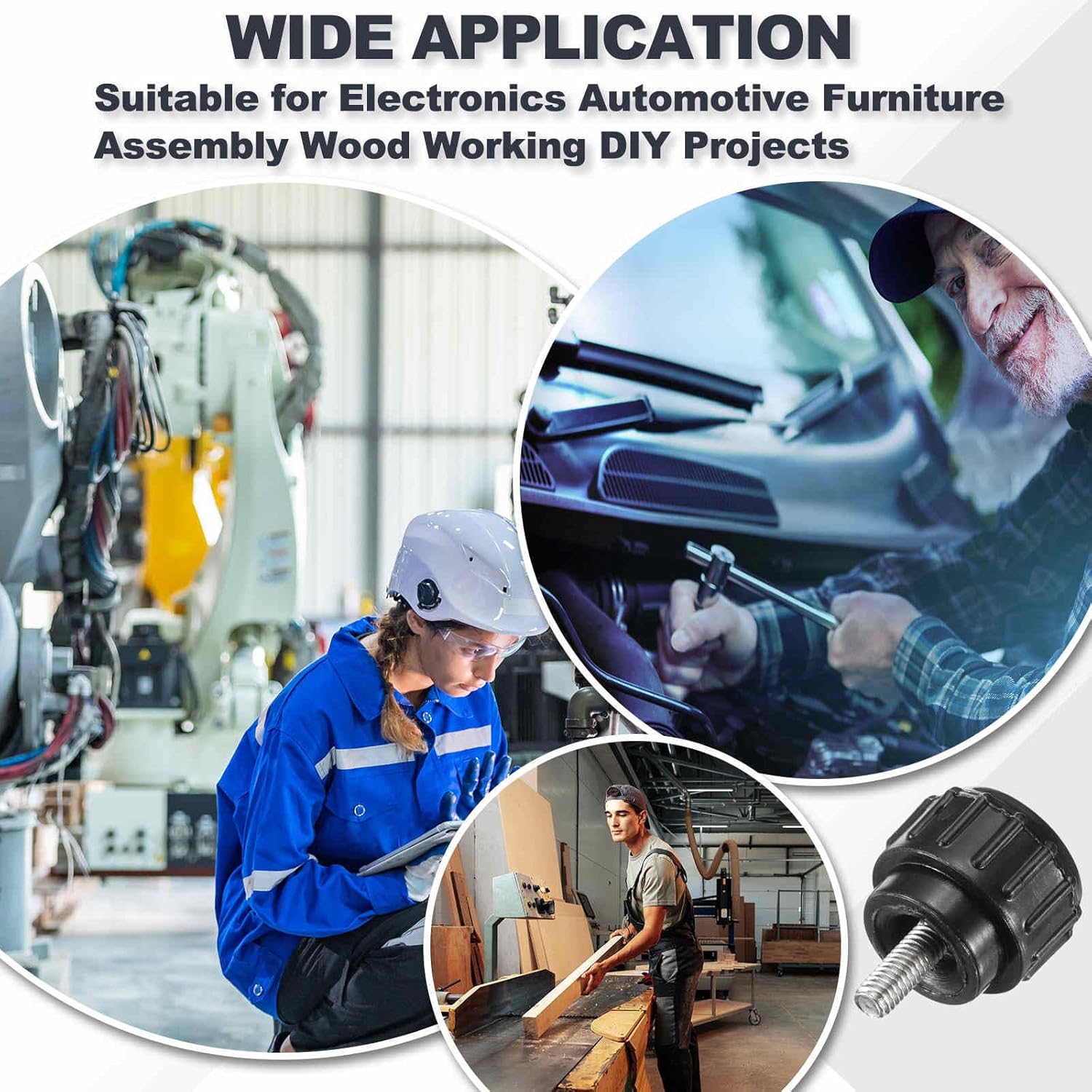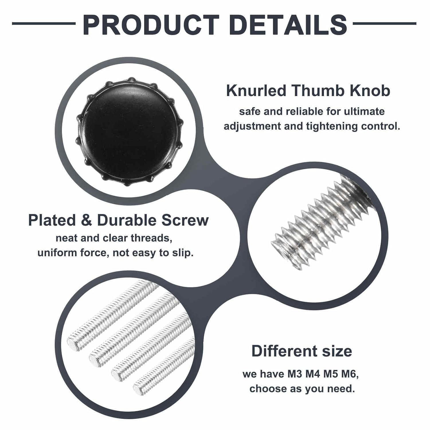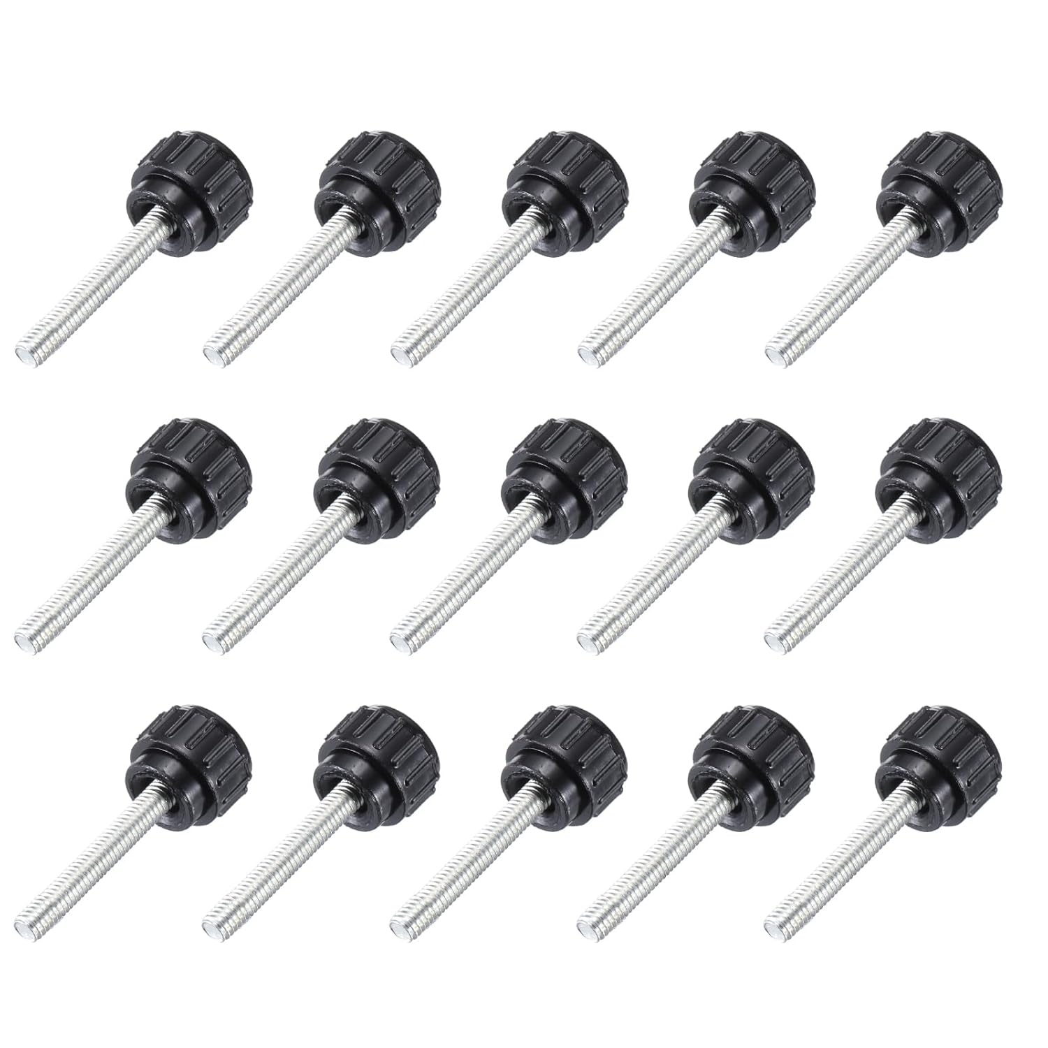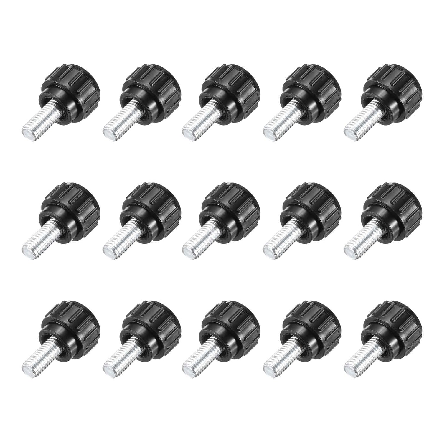 What is this?Knurled clamping knobs are knobs designed with a knurled surface for improved grip and handling. They have wide applications such as industrial machinery, jigs and fixtures, tools and equipment, woodworking.What will I get?The Knurled Clamping Knobs We Provide: Male Thread Size: M3(0.5 mm pitch); Thread Length: 6 mm/0.24 Inch; Head Diameter: 14 mm / 0.55 Inch; Color: Black; Material: PP + Carbon Steel; Package: 15 Pcs x Knurled Clamping KnobsIs there any advantages of the product?The knurled clamping knobs are made of carbon steel, sturdy thick material, no deformation, no fading rusty. Threads are neat and clear, the force is even and deep. Durable plastic knobs provide a smooth surface as well as a comfortable grip.How to use it?Steps of installation: 1. Align the threaded insert or bolt of the knob with the component you want to secure. 2. Rotate the knurled knob clockwise by hand to tighten it onto the threaded component. 3. Apply sufficient force to securely clamp or fasten the parts together.What should I notice?Avoid excessive rotation of the knurled clamping knobs to prevent damage to the threads or components.