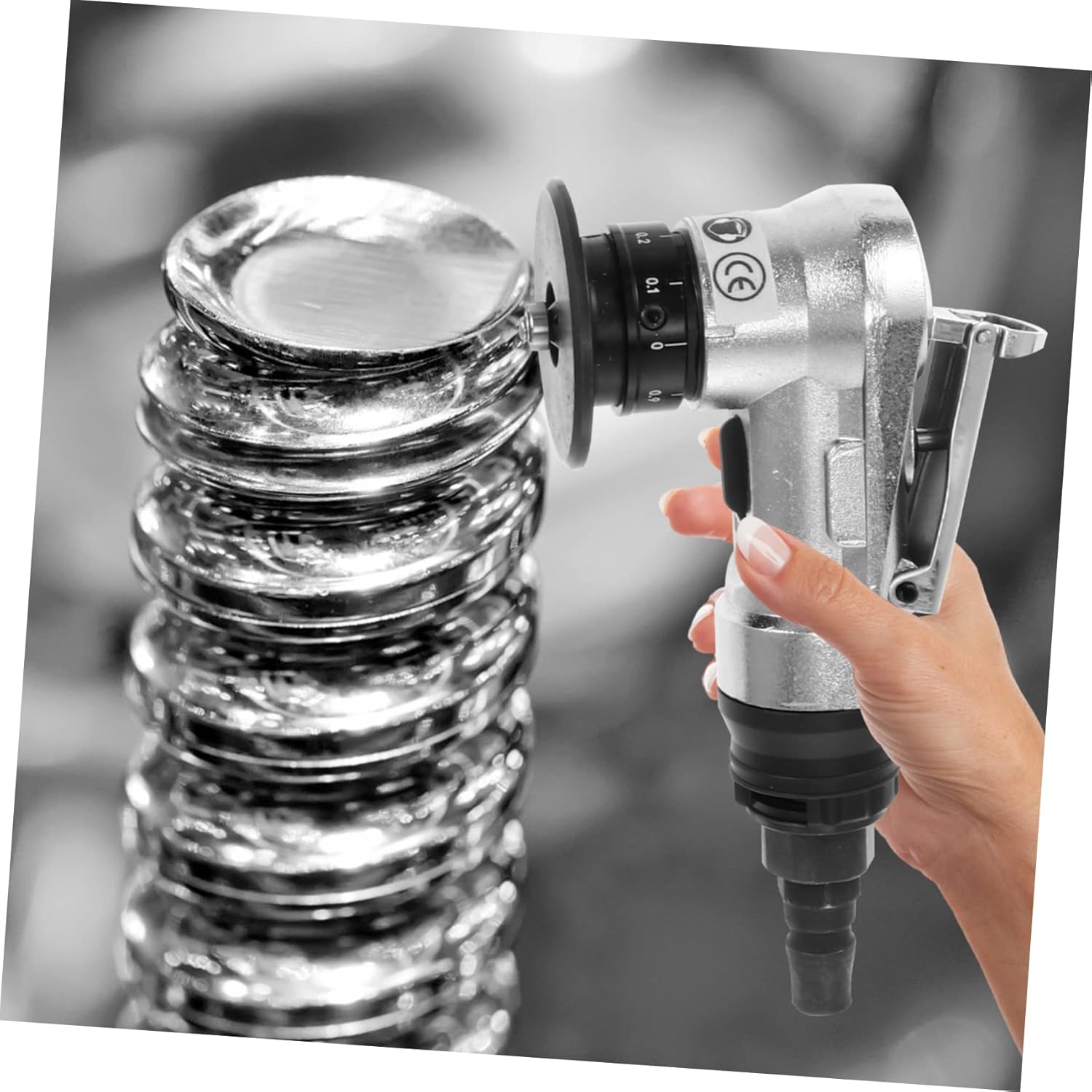 Package Include 1 x chamfering machine 1 x screw key 1 x dial screw key Characteristics Adjustable depth: 0.1-0.9mm Pneumatic Beveling Machine -Color: Silver Mini Polisher -Size: 16.00X8.00X5.00cm/6.29X3.14X1.97in Polishing Machine Rotating (idle): 30000RPM 90 Degree Air Die -Material: tungsten steel, alloy Pneumatic Air Die Chamfering ability: .1-C1.4 Wind Mill Machine Chamfering hole diameter: >=7mm Pneumatic Wind Mill Machine - With alloy baffle, can effectivelyblocking chamfering debris from coming towards your hand Pneumatic tool. - tungsten steel double blades withauxiliary bearing, strong force and sturdy Carving Machine. - Strong power and smooth operation, can beused to chamfer straight flange and round edge Mini Chamfering Machine. - Small size and light weight machine, youcan operate the machine one-handed Pneumatic Deburring Chamfer Tool. - Unscrew the dial screw, adjust dial size,then the screw to adjust Mill Engraving Tools.Goods DescriptionPractical Air Die Fineworkmanship, ensures practicality.Pneumatic Wind Mill Machine This handheld pneumatic deburring chamfer toolis made of material, which can withstand long-lasting use.Polishing Machine Featureshigh- material, which has high durability, not easy to deform