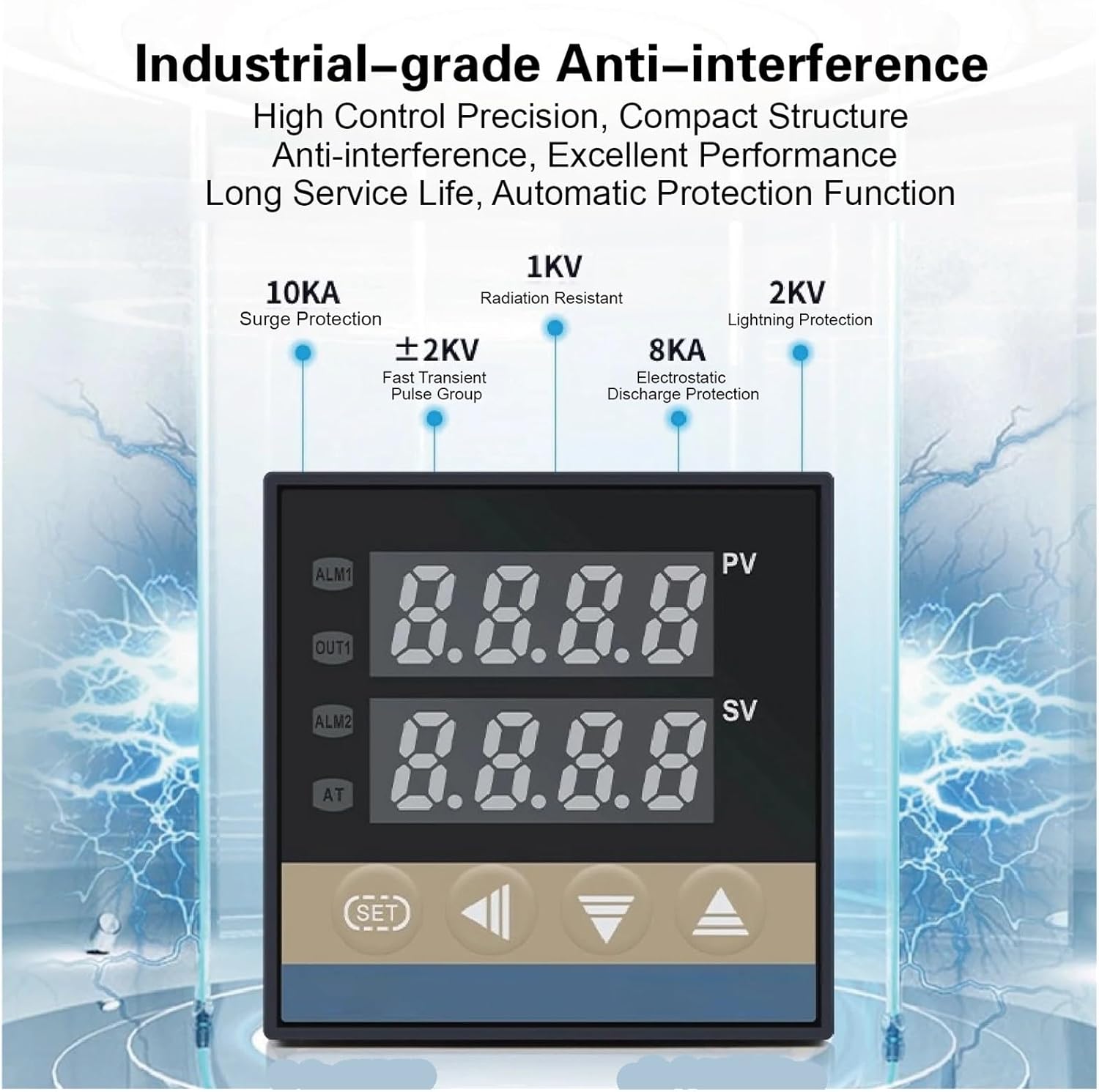 .Panel size: 72x72mm.Mounting cutout: 68x68mm.Embedded depth: 100mm.Total product length: 112mm.Weight: 0.240kg.Power Supply: 100-240VAC, 24VDCOptional configurations include relay or SSR output modes. Customization is available upon request.Additional sizes available:.45x45mm.92x45mm.92x92mm2,ParametersParameterSpecificationTemperature Range01200°CRated Voltage220V~±10% 50HzPower Consumption4WControl MethodPID fuzzy controlAlarm RangeFull range adjustableConnection MethodTerminal connectionOperating EnvironmentAccuracy±0.1%FS±1 digit or ±0.5%FS±1 digitOutput OptionsRelay, SSR (optional)Input OptionsK/E/PT100 (selectable)Theory : Thermometer HygrometerRated Voltage : 220V~±10% 50HzPower Consumption : 4WControl Method : PID fuzzy controlAlarm Range : Full range adjustable