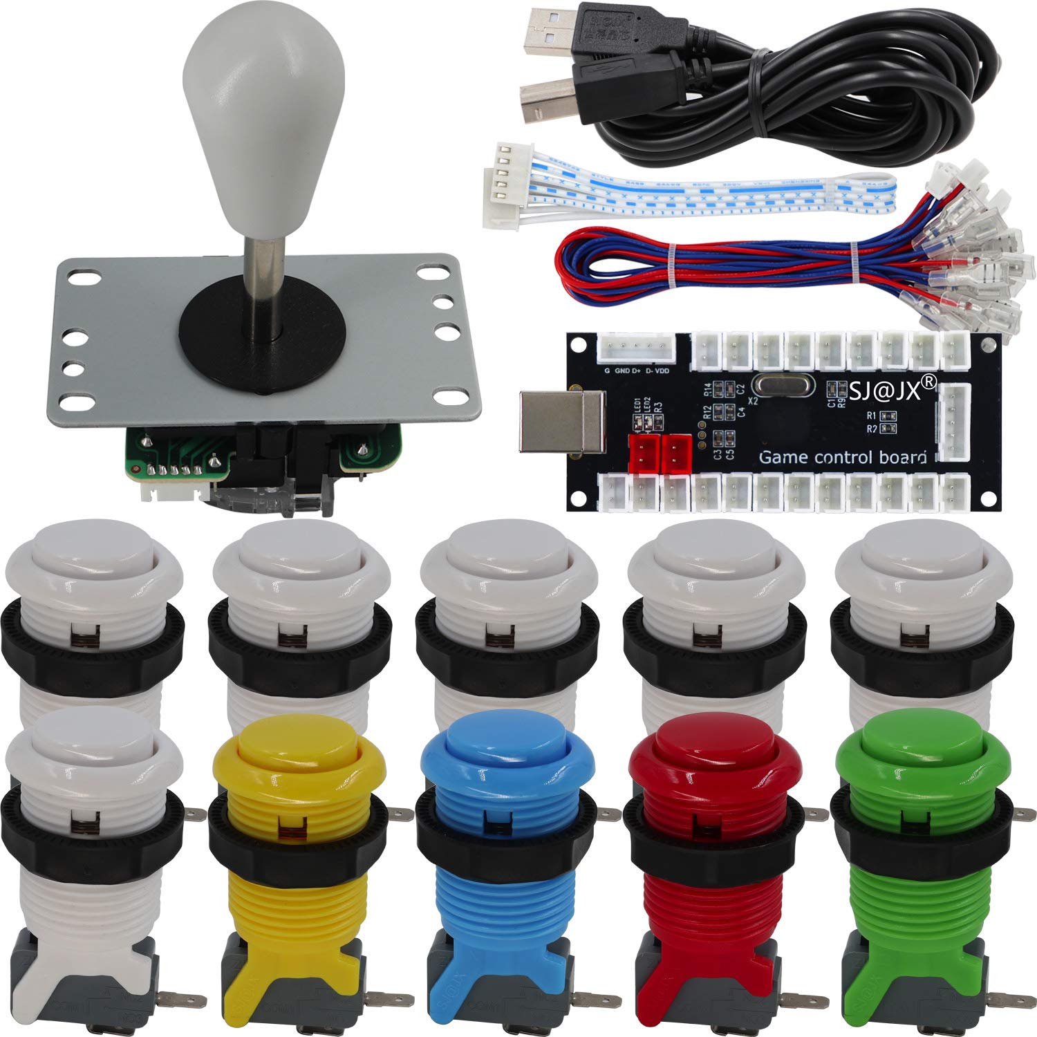 Include: 2x Encoder, 2x Joystick, 20x Buttons, 20x Microswitch, 2x USB Cable, 2x 5pin Cable, 20x 2pin Cable.