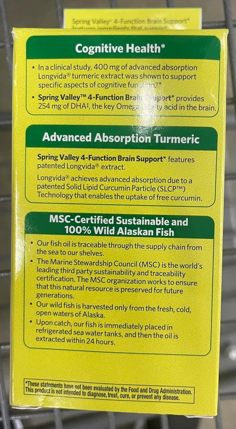 4-function brain support supplement 400mg clinically studied, advanced absorption Longvida turmeric extract 635mg EPA/DHA No gluten, artificial flavors, sweeteners, peanuts, or dairy 60 softgels United States coin image from the United States Mint.