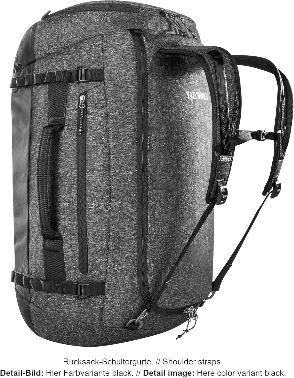 Foldable travel bag with 65 litre volume and stowable shoulder straps The Duffle Bag 65 travel bag from the German outdoor brand Tatonka is a real eye-catcher thanks to the unusual melange look. The backpack bag is made from robust, easy-care and PFC-free materials. With a volume of 65 litres, it offers space for the luggage of a week-long trip. If the bag or backpack is not needed, the duffle bag can be folded to a minimum size, stowed away small in the lid compartment and stored in a space-saving way. Large suitcase opening & stowable backpack shoulder straps Thanks to the large zip opening in the main compartment, the duffle bag 65 l can be conveniently packed, compression straps fix the luggage. The main compartment also has two flat mesh pockets with zip - for smaller items that need to be quickly at hand. In addition, the bag is equipped with a lid compartment. Handles on three sides offer you different carrying options, the bag is also equipped with stowable backpack shoulder straps. Product features: • Stowable backpack shoulder straps • Main compartment with compression straps. • Compression straps to secure luggage in the main compartment. • 3 handles. • Lockable zip pulls. • Large zip opening into the main compartment. • Side zip pocket. • Mesh pocket with zip inside • Very small pack size. • Complete pocket can be stowed in the lid compartment. More product details: • Dimensions: 65 x 32 x 32 cm. • Packed dimensions: 35 x 30 x 15 cm. • Capacity: 65 L. • Weight: 1 kg • Materials: T-Travel Tex melange (59% polyamide, 41% polyester), 420 HD nylon (100% polyamide). /// Tatonka - Bavarian family business with fair and transparent production. Fair, social and transparent - Tatonka brand products are manufactured in our own production facilities under social, fair and transparent conditions. The production can be viewed by anyone during operation. Information at openfactory.tatonka.com. /// Traceability by Tatonka: Transparency creates trust Traceability means traceability. "Traceability by Tatonka" means that you can track the path of Tatonka products from purchasing materials to manufacturing to shipping to the country of destination. For more information, please visit Tatonka.