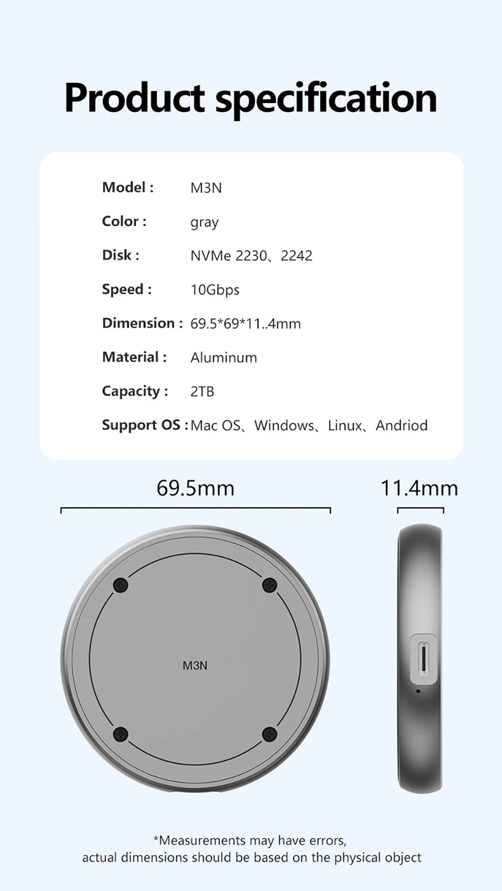 Unmatched Compatibility and Performance: Compatible with NVMe protocol SSD hard drives with M Key & B+M Key compatibility, exclusive to the 2230 size solid state drives. With support for up to 2TB capacity expansion, experience lightning-fast data transfer speeds of up to 10Gbps via the USB 3.1 GEN2 Type-C interface. Say goodbye to slow transfers and hello to efficient plug-and-play convenience.